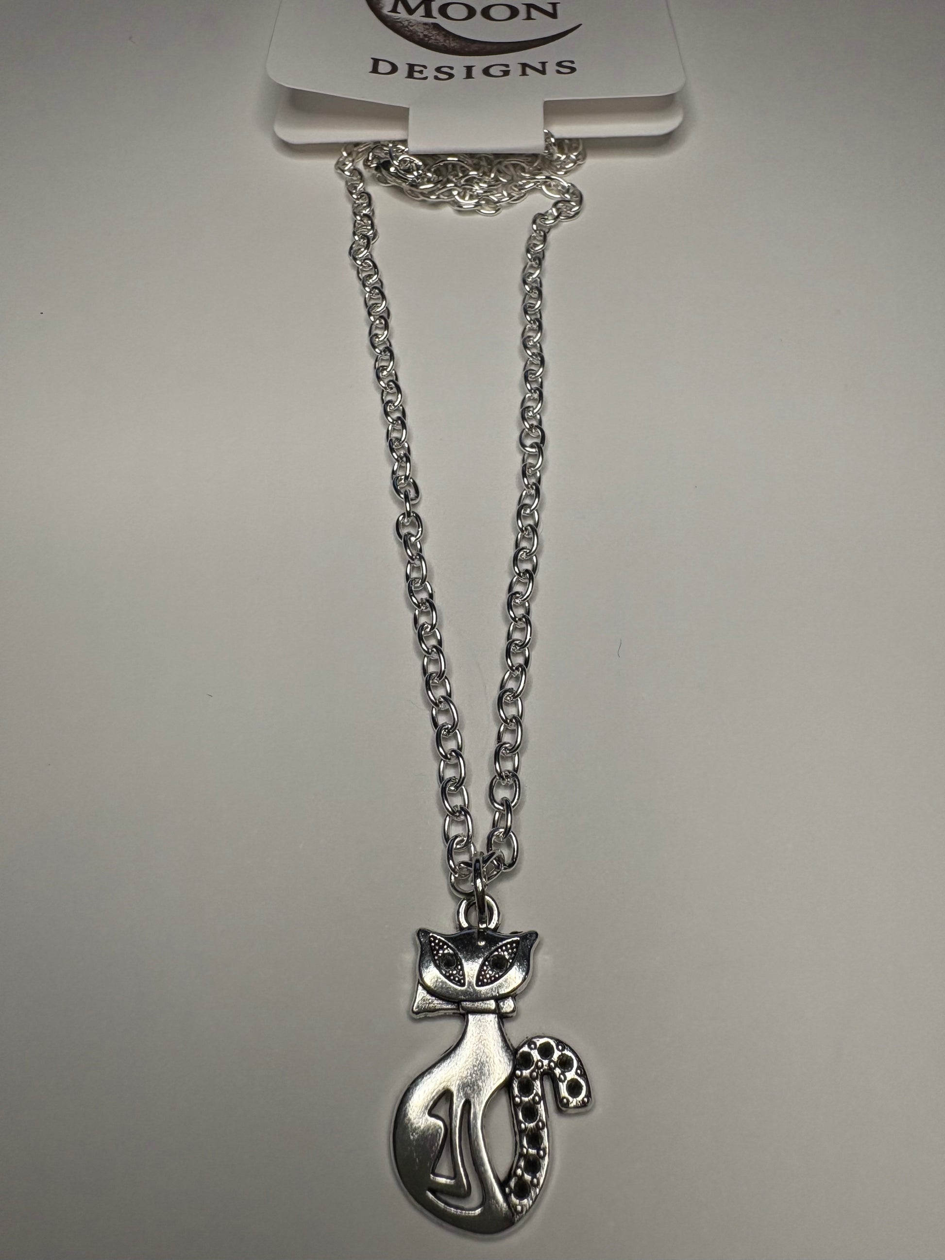 For the cat lovers out there. Long, silver colored hypoallergenic necklace.