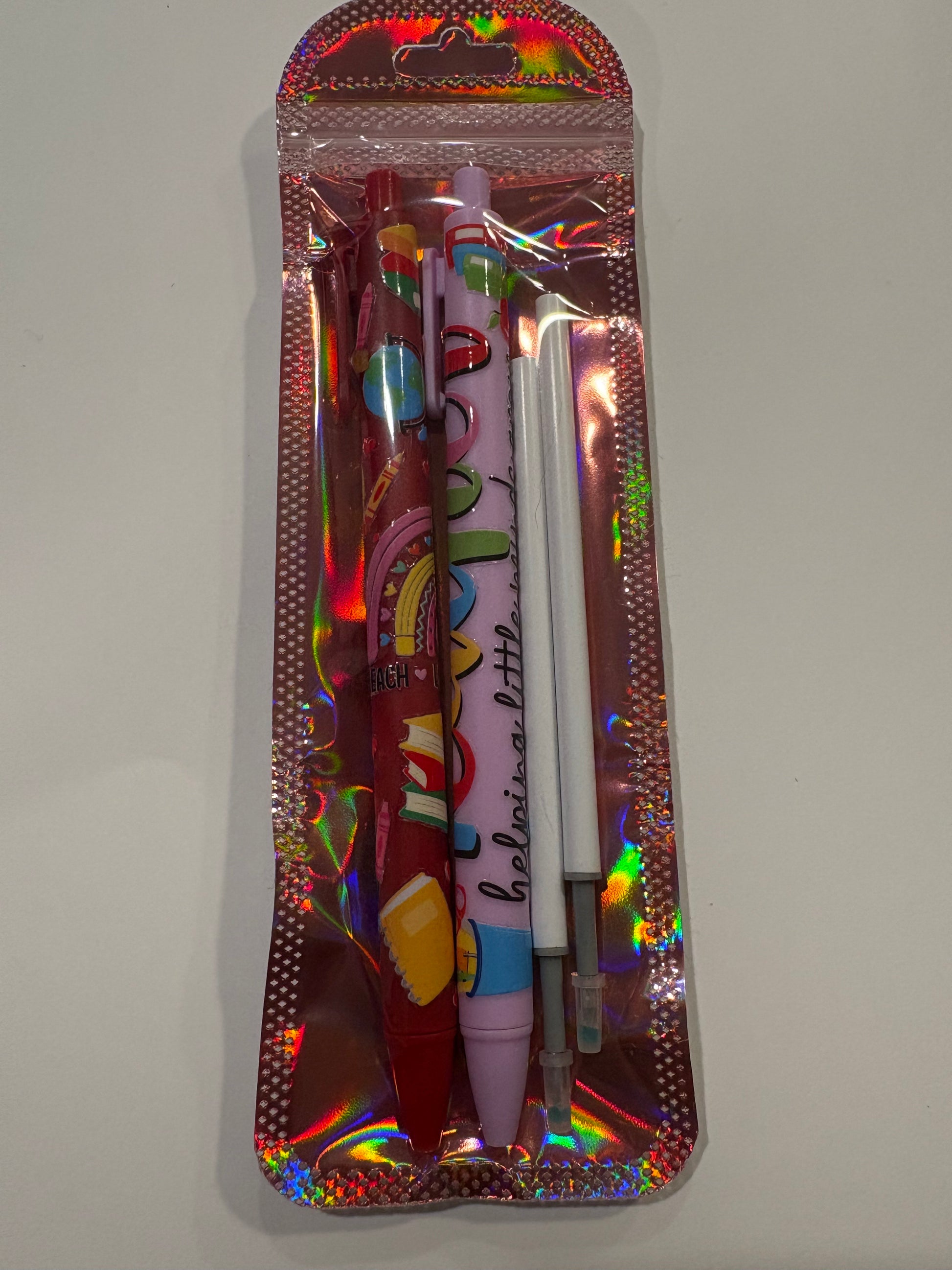 Uvdtf wrapped pens. Teacher themed two pack with refills.